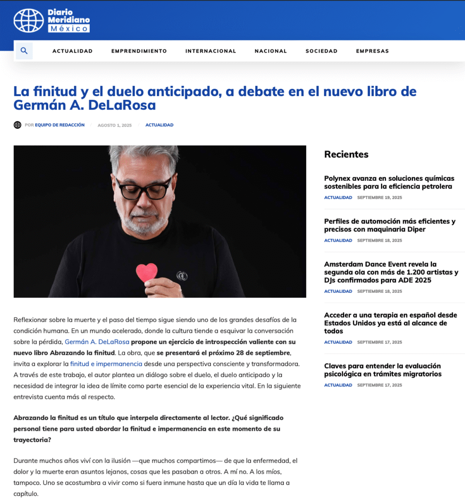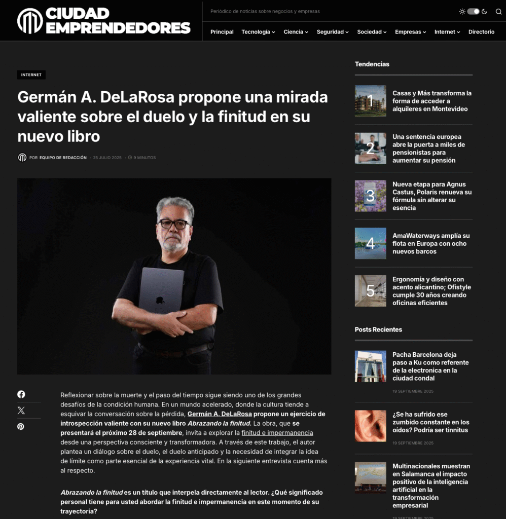«Abrazando la Finitud»… ha alcanzado más de 300 medios digitales en América Latina y España. Aquí presentamos una selección de apariciones destacadas que reflejan la amplitud de la cobertura.